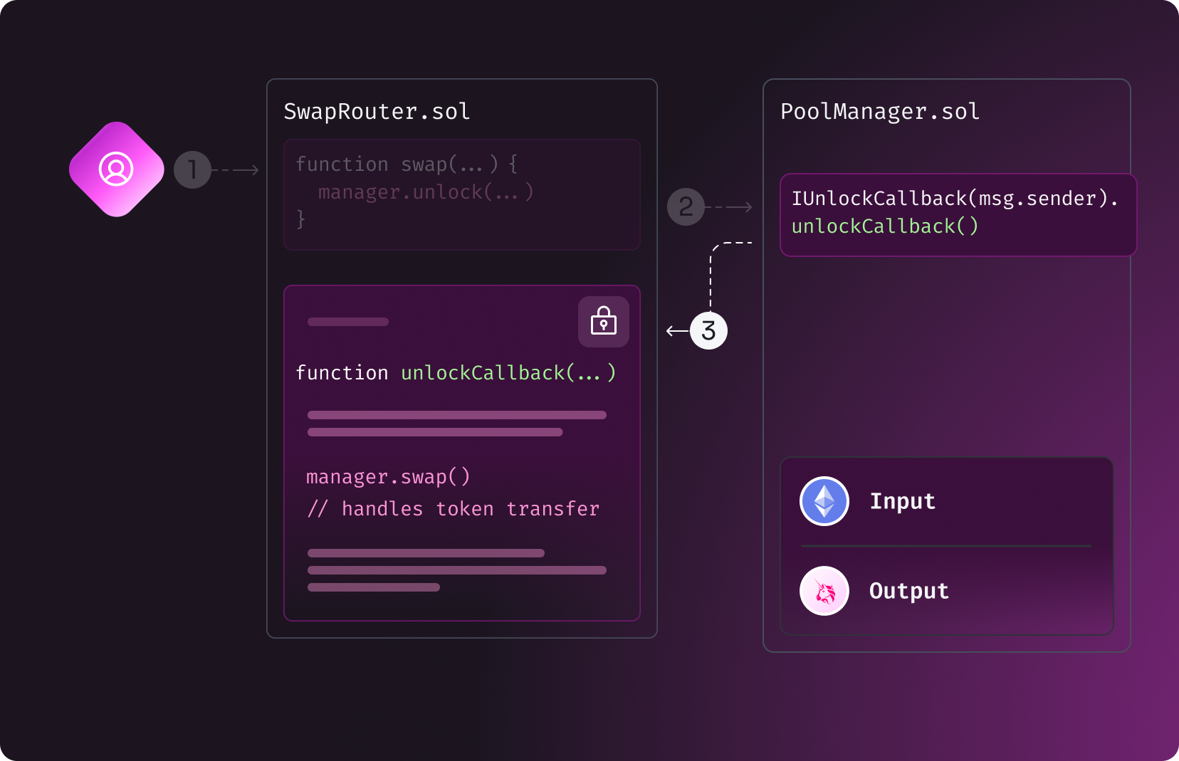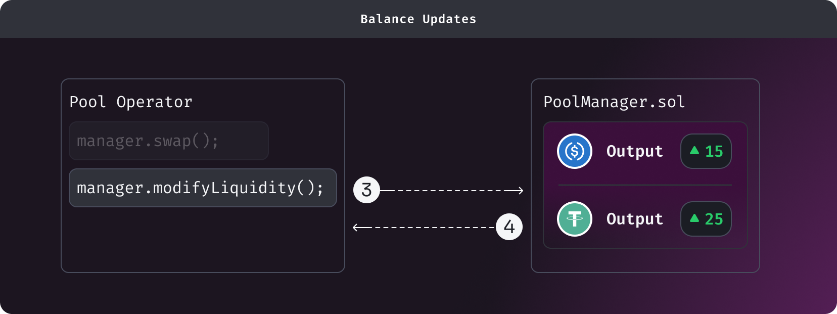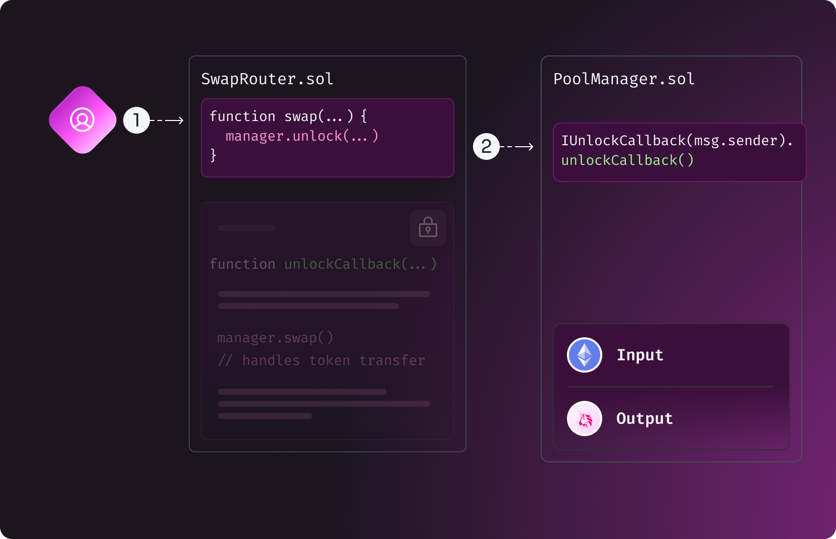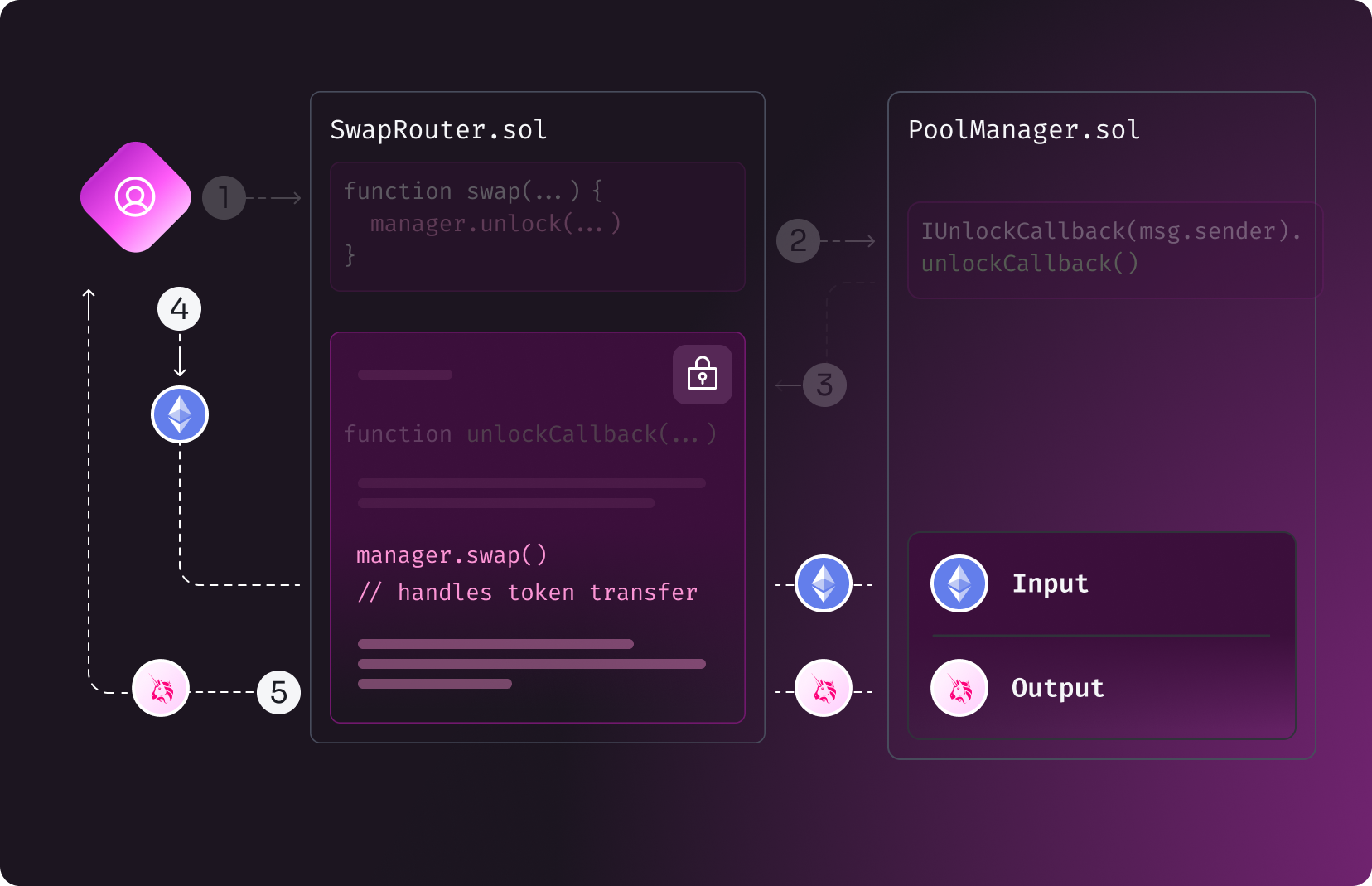 To see how unlock callbacks and deltas work in a smart contract, read Unlock Callback and Deltas.