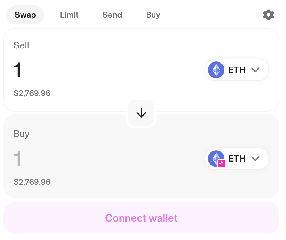 The easiest way to get funds on Unichain is to bridge from Ethereum mainnet in the Uniswap interface. Connect your wallet, select ETH as the input token on Ethereum mainnet, and ETH as the output token on Unichain.