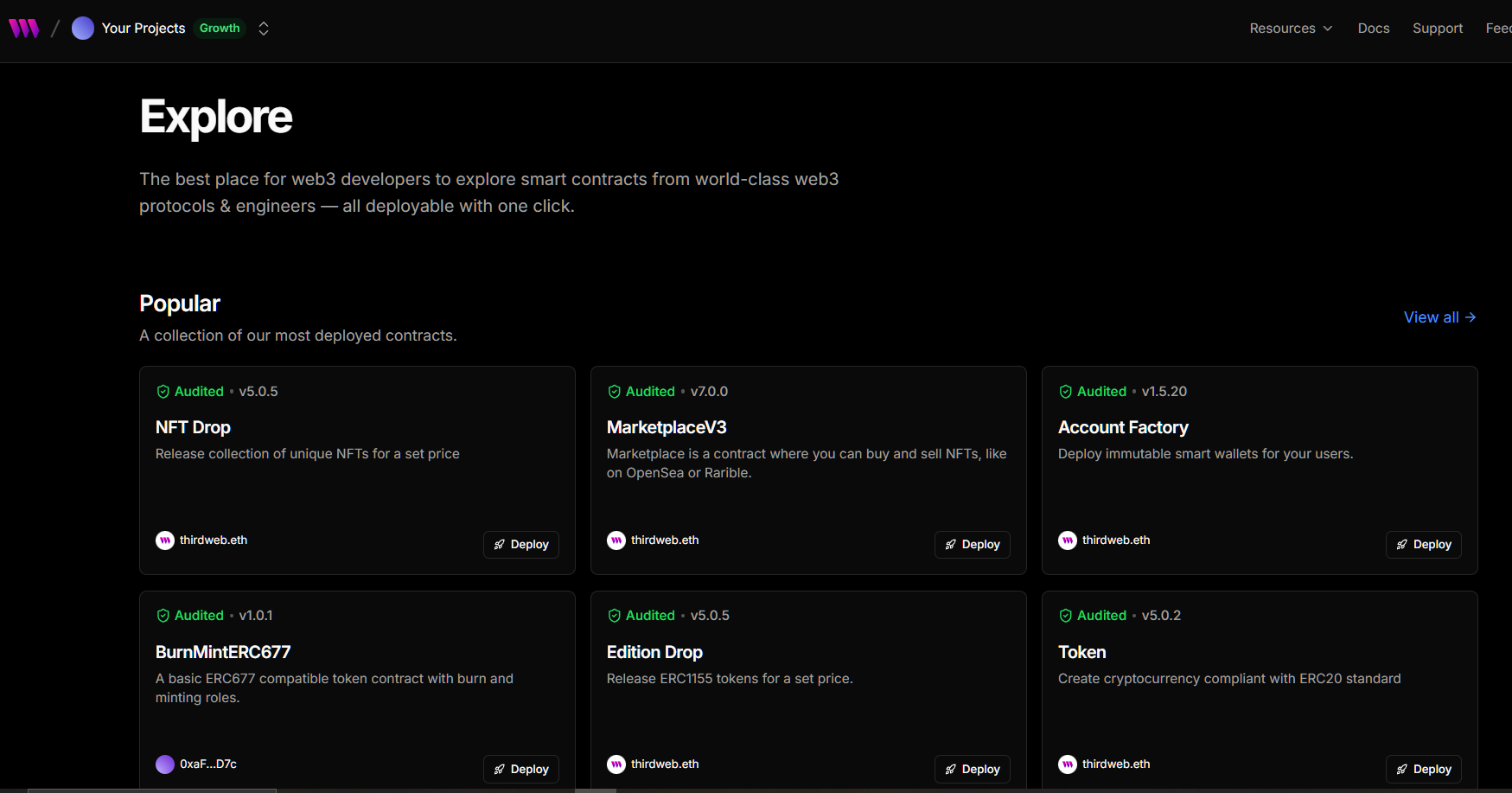 - Visit the thirdweb Explore page: You can access the contract deployment page in the following ways