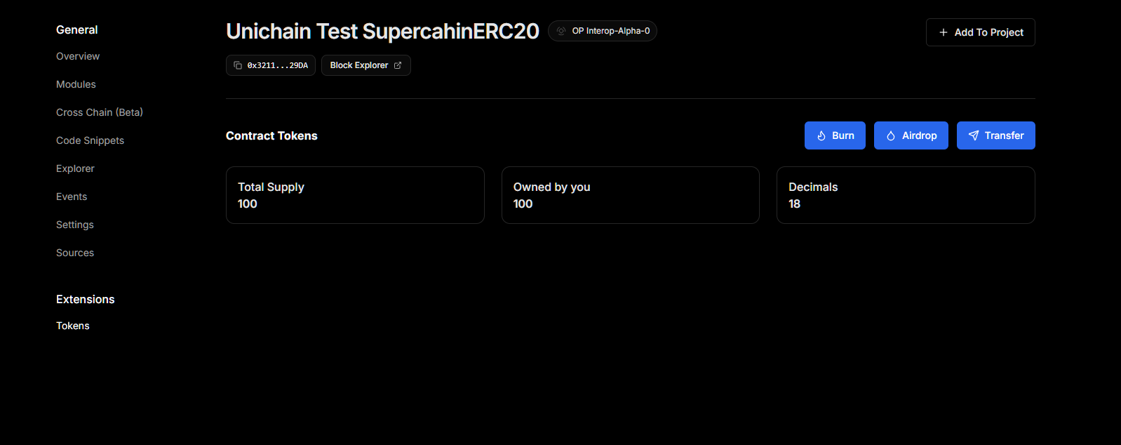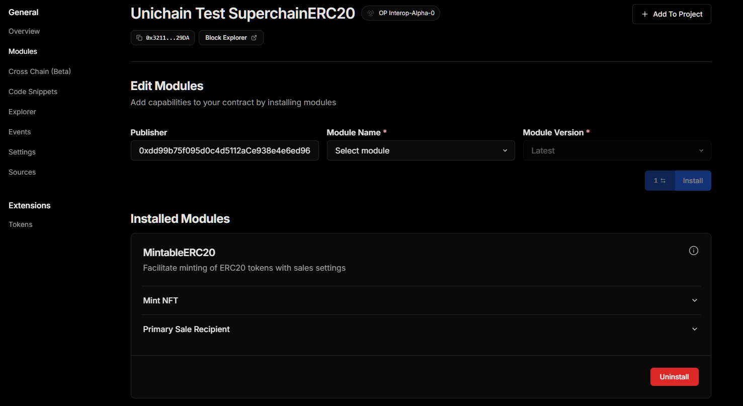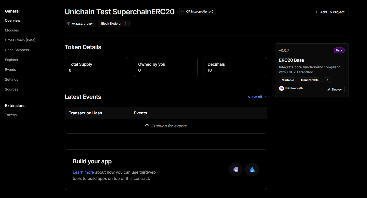 Deploy a SuperchainERC20 token on Unichain with thirdweb and prepare it for Uniswap trading.