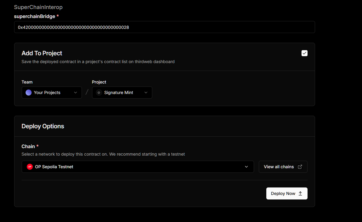 - Initiating deployment: Click on "Deploy Now" to deploy the contract