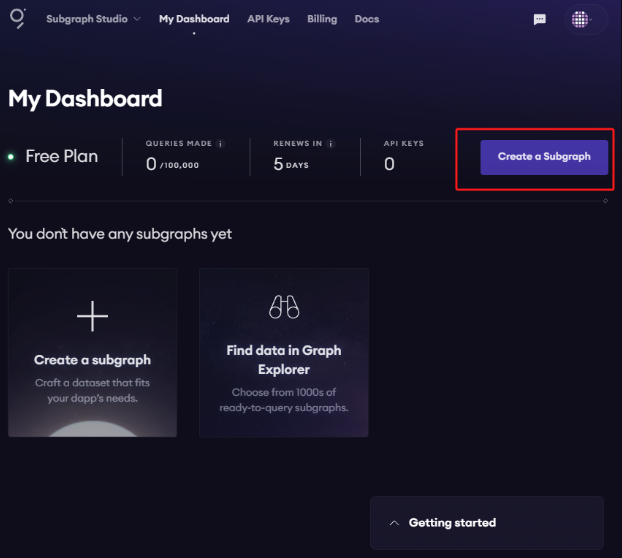 In Subgraph Studio, you'll see the "API Keys" menu at the top of the page. Here, you can create APIÂ Keys.