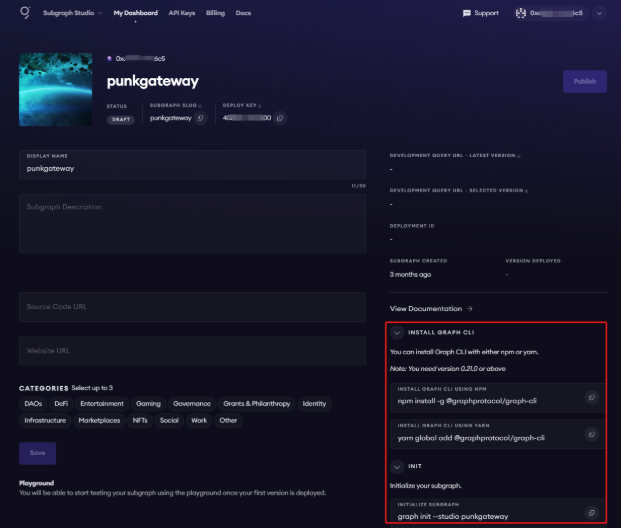 You'll land on your subgraph's page with all CLI commands visible on the right side.
